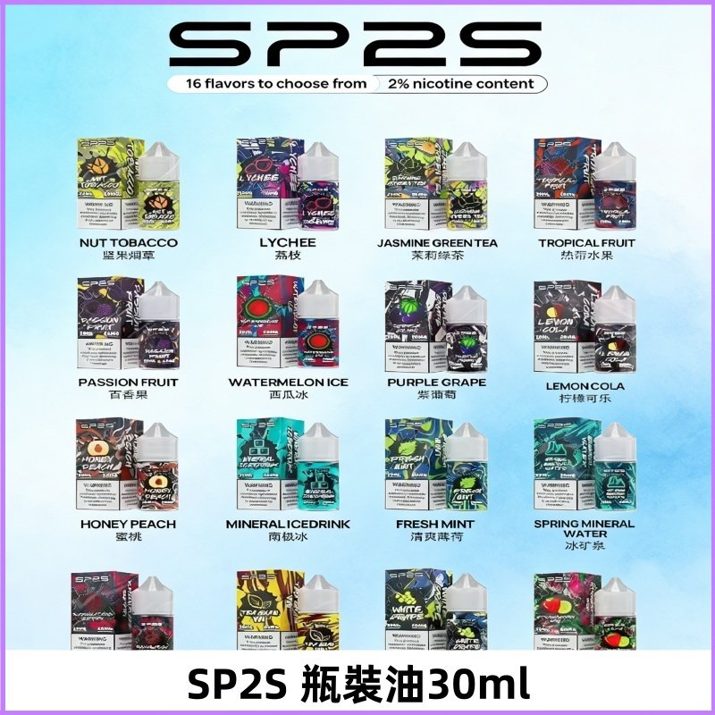 SP2S思博瑞電子菸品牌的產品一直都是台灣電子煙市場或其它地區的熱門品牌,受到煙民們的一致好評與回購。為跟進市場的脚步,SP2S思博瑞全新推出一款30ml/20mg的小煙油,多種口味選擇,卓越風味與高度還原口感,SP2S煙油將為您帶來滿意的vape電子煙體驗。